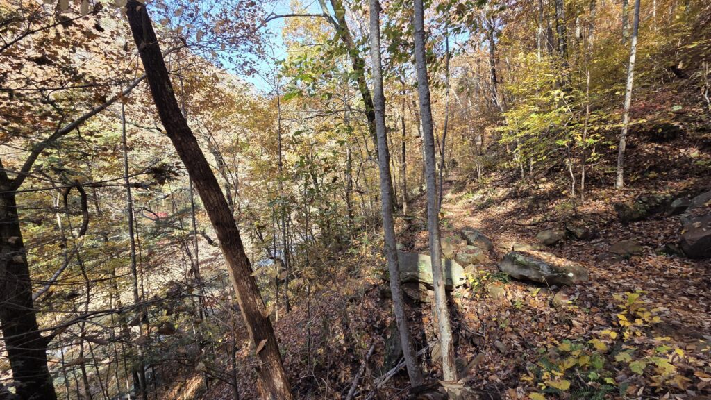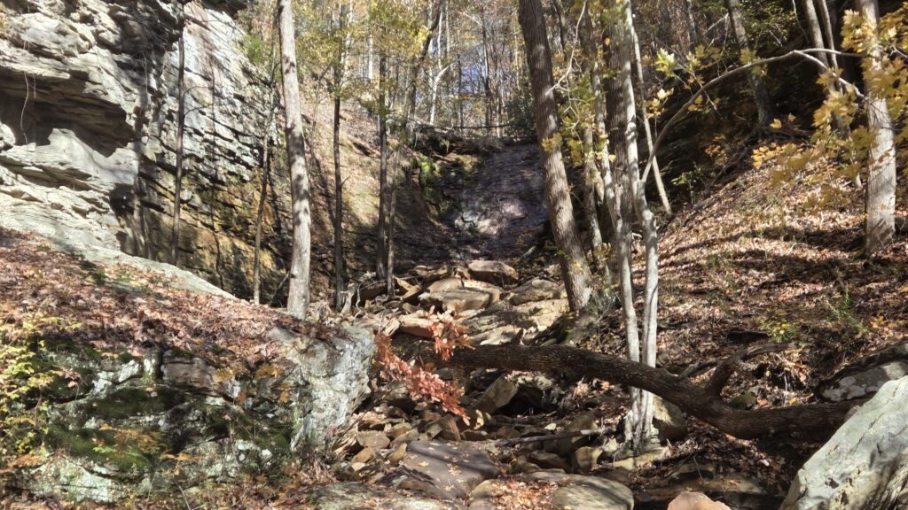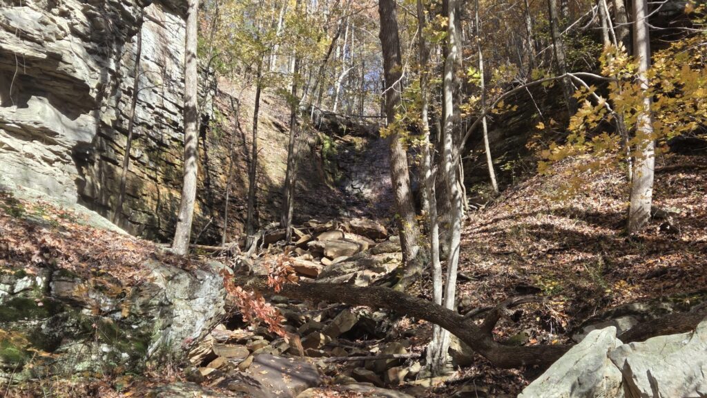 I wanted an easy hike so I went toward Blue Hole, but when I got to the creek crossing, I decided that would be too difficult in my current condition, and went toward Stripmine Falls. That was a hell of a climb. I believe the internet says it’s close to 600 feet, but it felt higher.